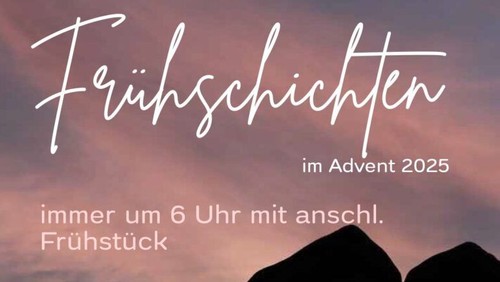 Am Freitag, den 5. Dezember 2025 um 6:00 Uhr frühmorgens laden wir ein zu einer Andacht in unserer Kirche und anschließendem gemeinsamen Frühstück im Gemeindezentrum. Das Motto der diesjährigen Frühschichten lautet "Mitten unter uns". Jugendliche und Erwachsene sind herzlich eingeladen, an den Freitagen in der Adventszeit an dieser ökumenischen Andachtsreihe mit jeweils anschließendem Frühstück teilzunehmen. Am Freitag, den 12. Dezember, findet die Frühschicht in der Marienkirche statt und am Freitag, den 19. Dezember in der Lindenkapelle.